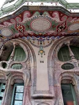 Но истинското бижу според мен е фасадата на улица Кóрсега (calle Córsega, 336), където в блясъка на всяко късче керамика се отразява средиземноморското слънце и преливат неуловимо един в друг цветовете на дъгата. Тук много категорично личат почеркът и влиянието на Гаудѝ, като приликите с творбите му са повече от очевидни – оригинални плавни форми, изобилие от керамика, чиято глазирана повърхност създава неповторимия полихроматичен ефект, единствено и само вълнообразни линии (тоест липса на ъгли) и изящни флорални мотиви. А великолепните светлозелени щори, които скриват всичко от нежелани погледи, са идеалното допълнение към цялостния дизайн на фасадата. Като клепачите на преситени от крещящи гледки и уморени от ослепително-ярки нюанси очи…