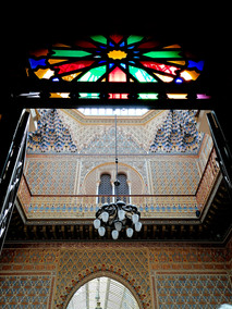 В сърцето на стария град, на една от емблематичните търговски улици на Мурсия (Calle Trapería, 18), се издига сграда, която, заедно с Катедралата, отдавна е придобила значението на „визитна картичка“ на Мурсия. Това е Кралското Казино на Мурсия (пълното му име е El Real Casino de Murcia). Но не си представяйте игрално казино, където рулетките се въртят, звънтят безспирно игрални автомати, а залозите на „червено“ или „черно“ се следят с върховно напрежение. Съвсем не – това казино е център на елегантността, фините тоалети, изисканите маниери и светския живот на елита на местната буржоазия. Сградата, в която се помещава в момента (построена в периода 1847-1853 г.), е абсолютна смесица от стилове и арт-влияния и във времето е претърпяла (по различни причини) немалко „премоделирания“. Преддверието е типично арабско и е изключително пищно (като декор от „1001 нощ“), централният коридор е неокласически, една от залите е в древногръцки стил, декорирана с прекрасни статуи, а голямата бална зала е като „извадена“ от виенски дворец – сякаш всеки момент ще зазвучи валс и двойките ще се понесат плавно по бляскавия паркет… Много ми хареса читалнята в бароков стил и стаята на дамите с прелестно изрисувания си син таван. Вероятно там са пооправяли грима и прическите си, оглеждали са се взаимно от глава до пети (чий тоалет е по-скъп и по-фрапантен?) и несъмнено са клюкарствали на спокойствие за всичко – от съпрузите и децата си, през финансите и прислугата, та до сърдечните вълнения. Казват обаче, че очарователният с фреските си таван имал специални „шпионски“ отвори, откъдето мъжете подслушвали своите мили съпруги (и не само своите!). Така де, доверието си е доверие, обаче друго си е да чуеш истината с ушите си…